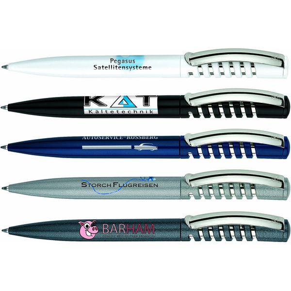 Award winning retractable ballpen with unique push-cap mechanism. Available in a range of metallic shades with metal clip and inner. Fitted with a large capacity blue G2 refill.