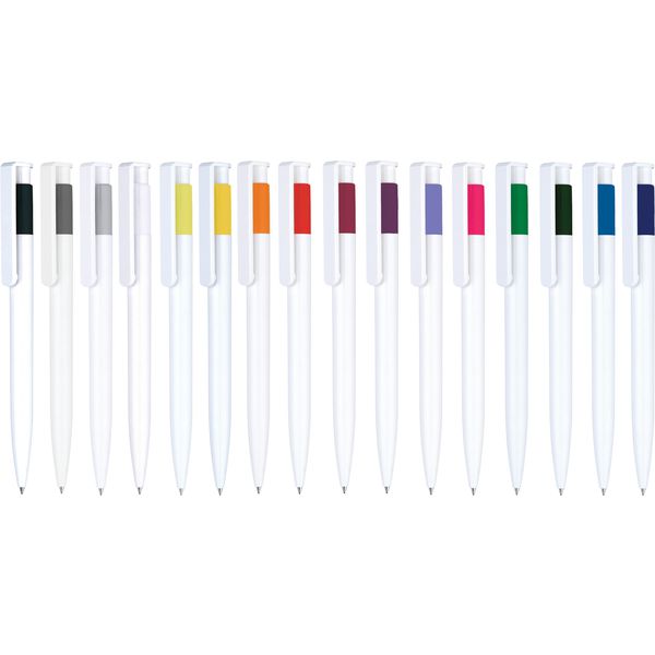 One of our most popular pens with a huge print area distinctive coloured rings to match your logo, combined with the ICO long life refill as standard and options of blue, red, black or green ink at no extra cost make this the perfect everyday promotional pen.