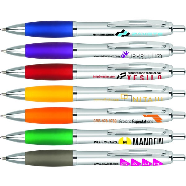 Retractable push-button ballpen with a sleek design satin silver finish chrome fitments and a comfortable rubber grip in a huge choice colours. Black ink refill.