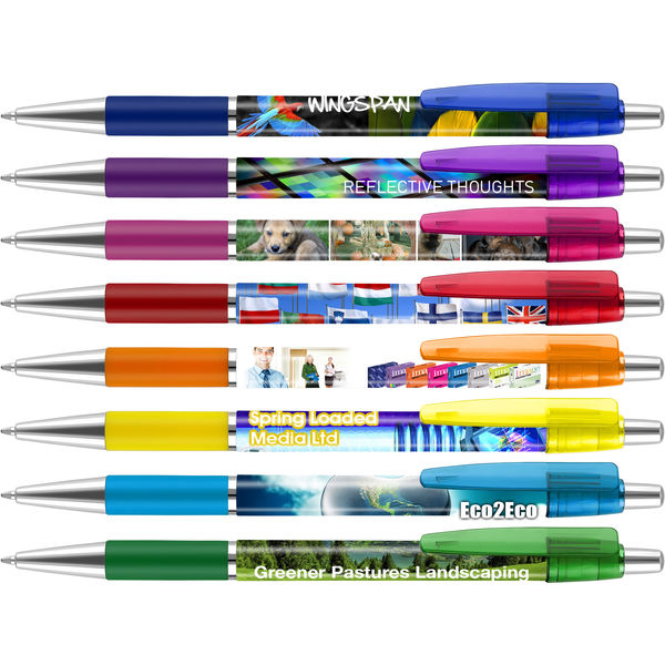 The System 010 Ballpen is a stylish retractable ballpen available in 8 popular colours each with chrome trim. Supplied with full colour wrap to barrel.