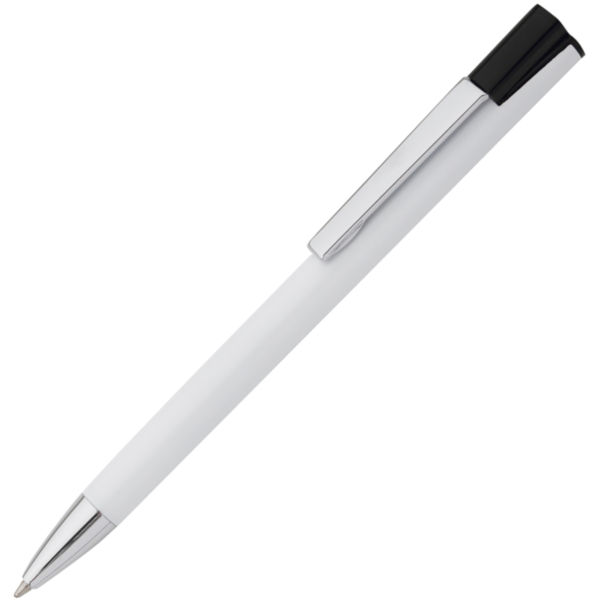 Beautifully styled aluminium ballpen in a metallic finish with shiny chrome trim. Unique push clip action. Large area for a company logo or message. Black ink.