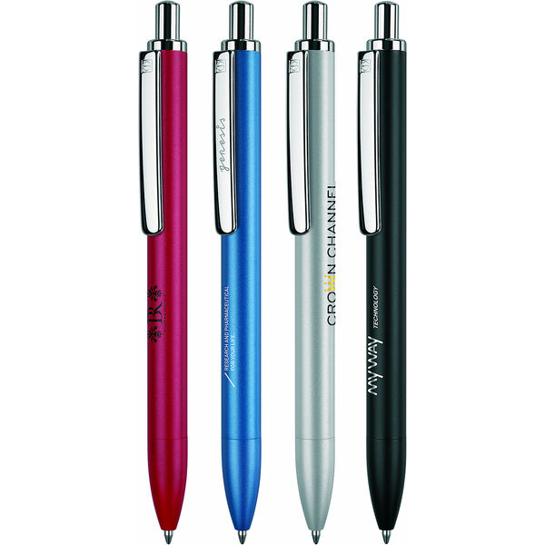 Crafted from aluminium with a matt lacquered barrel and high-gloss chrome trim. Fitted with a large capacity blue ink refill. Also available as a mechanical pencil and as a gift set.