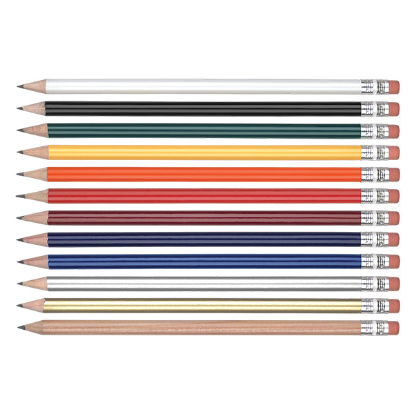 Wooden pencil with gloss paint finish silver ferrule and pink eraser. Multi-colour printing service available on most colours in the range.