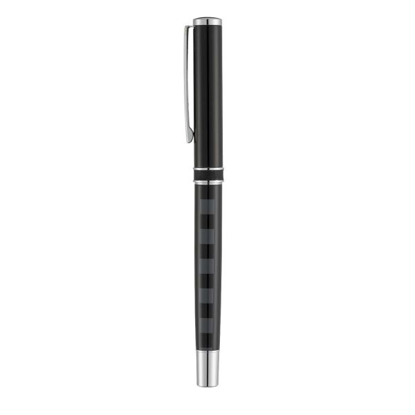 Wilson Pen Set. A block-patterned barrel adds distinctive character to this exclusive design ballpoint and rollerball pen pair with PU leather wrap in the middle. Incl. Avenue pen gift box (size: 16.9 x 5.2 x 2cm). Metal.