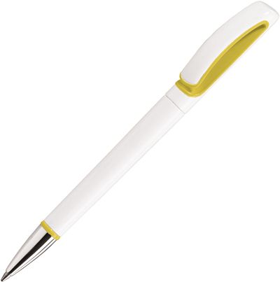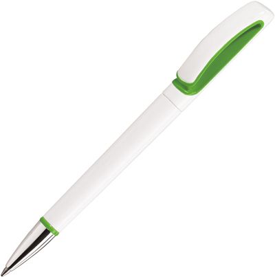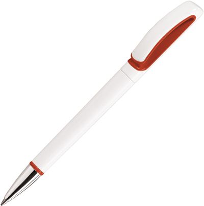 A twist action ball pen with a contrasting trim under the clip and chromed nose cone for a very modern look.