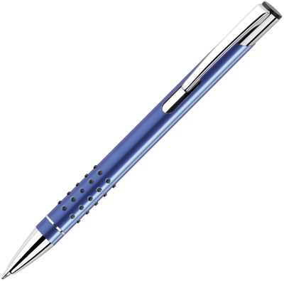 A metal push action ball pen in vibrant colours and a unique grip. Same price for printing as engraving but with a slightly smaller print area (50 x 6mm).