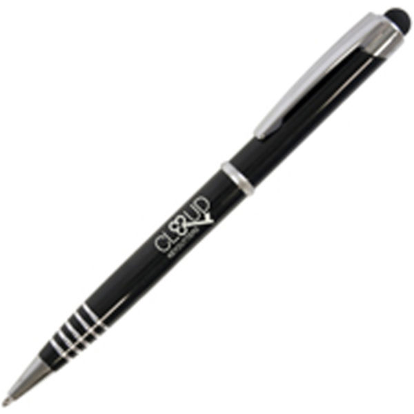 A stylish twist action aluminium pen with a soft stylus end piece - ideal for touch sensitive devices.