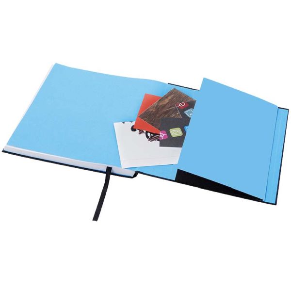 Delta notebook. Exclusive design square notebook with 80 sheets (100gsm) lined paper, elastic closure and inner pocket at the back to store notes and business cards. The upper part of the inner pocket can also be used as a pen loop. Packed in a black Marksman gift box. Leather paper covered cardboard.
