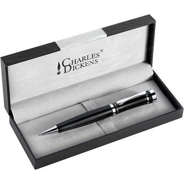 Charles Dickens metal ballpen with silver trim, twist mechanism and black ink, supplied in deluxe presentation case.
