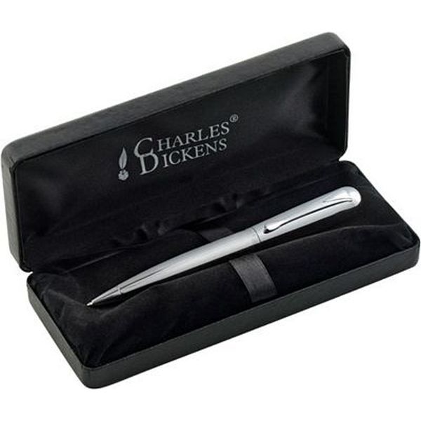 Charles Dickens metal ballpen with twist action mechanism, black ink, supplied in a deluxe presentation case.