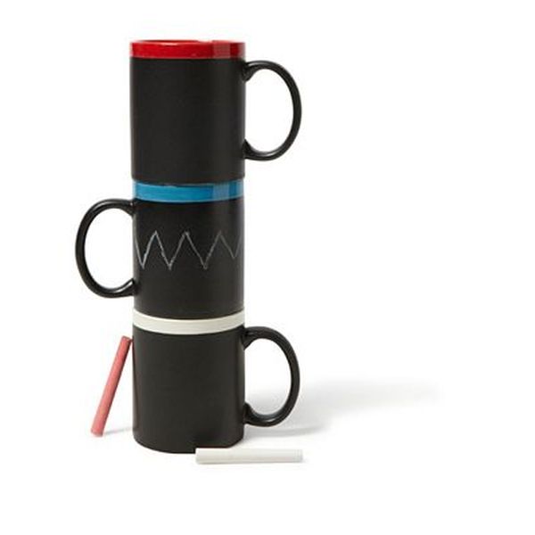 Ceramic mug (300ml) with a black panel for drawing, includes one piece of chalk