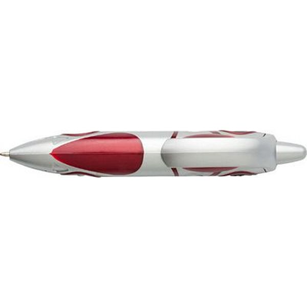 Plastic car shaped ballpen with blue ink.
