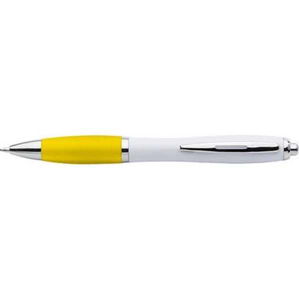 Cardiff ballpen with a white barrel, coloured grip and blue ink.