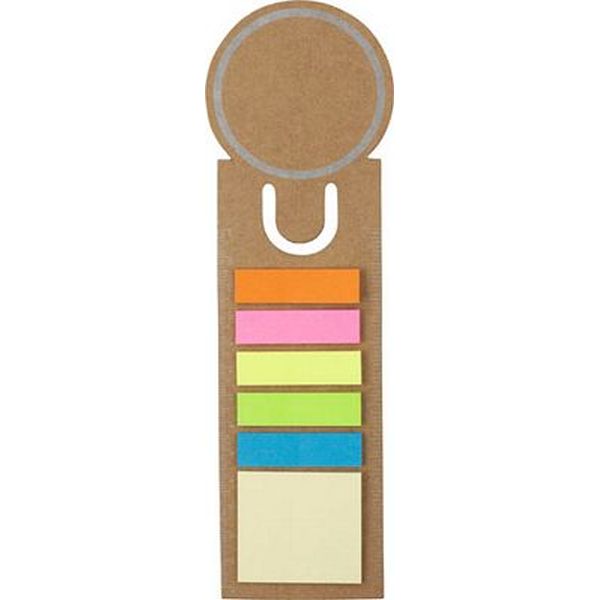 Bookmark made from card with five different coloured sticky page memos and a 4 x 4.5cm sticky note pad