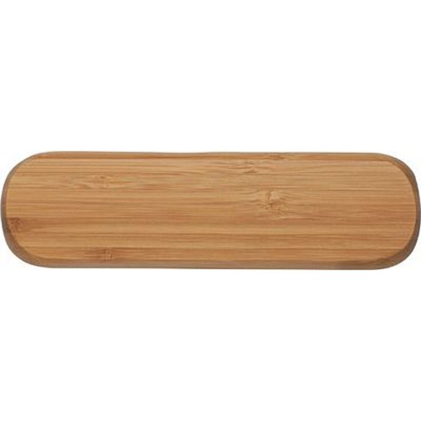 Bamboo ballpen with metal trim parts, blue ink and supplied in a matching box.