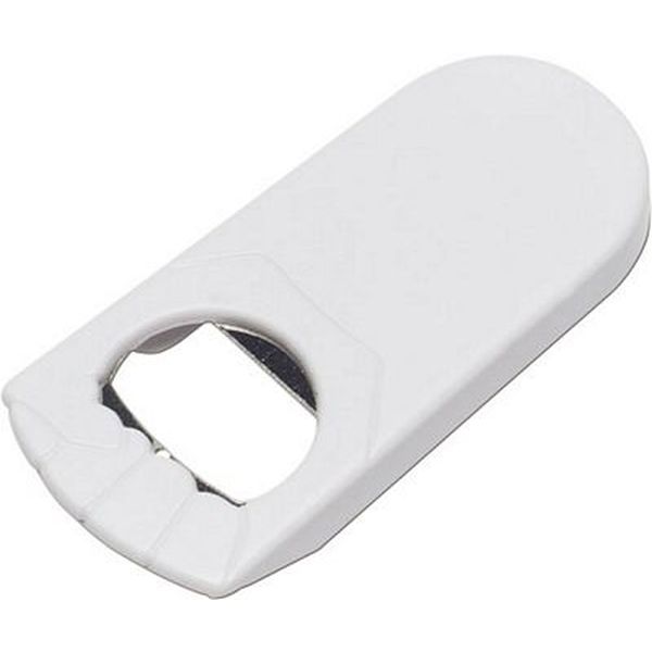 Plastic bottle opener in the shape of a fist.